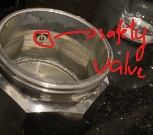 Next step, put some hot water (not too hot) into the water chamber. The water should not above the safety valve. The water should be tiny reaching this valve.